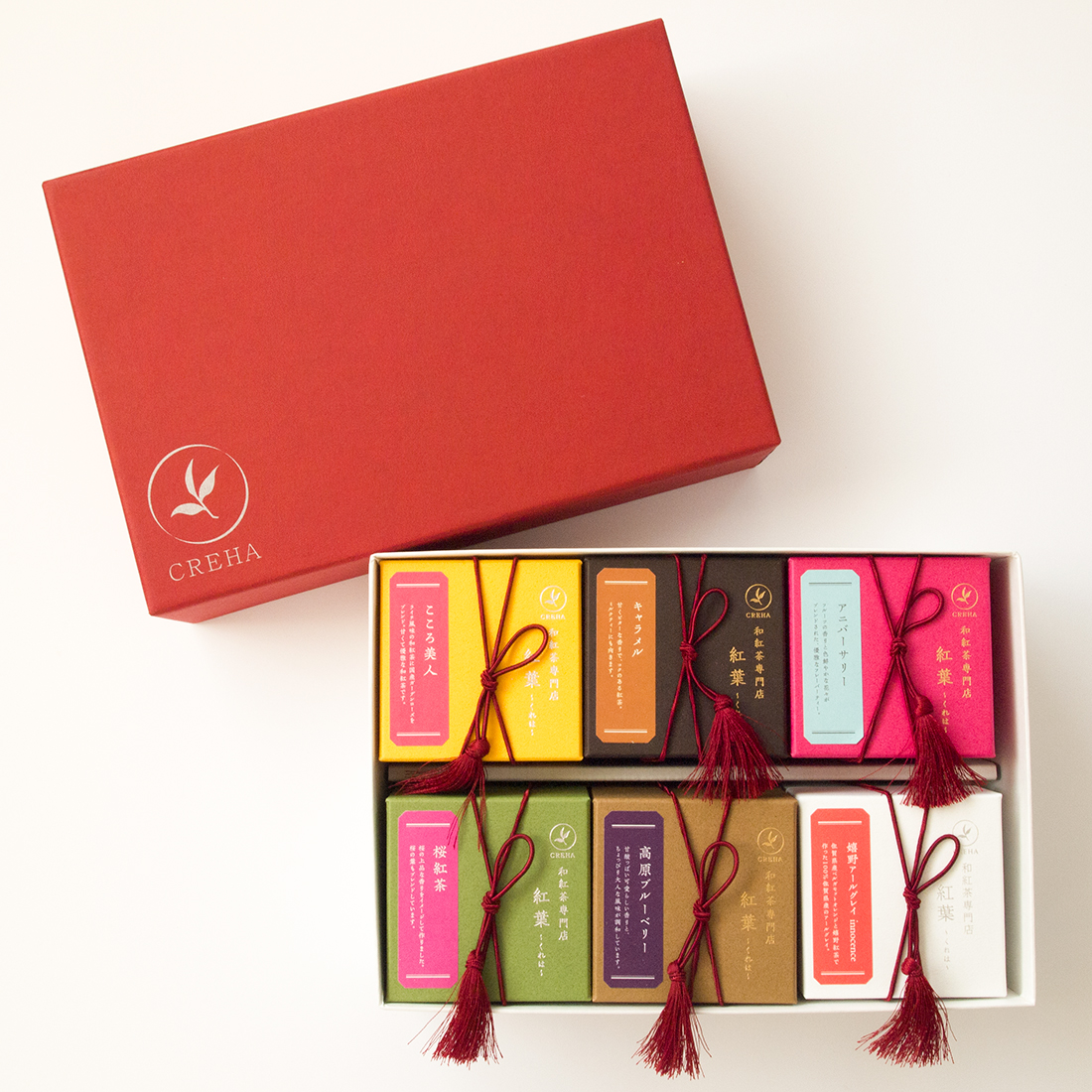 紅葉のロゴマーク入りのギフトボックスです。