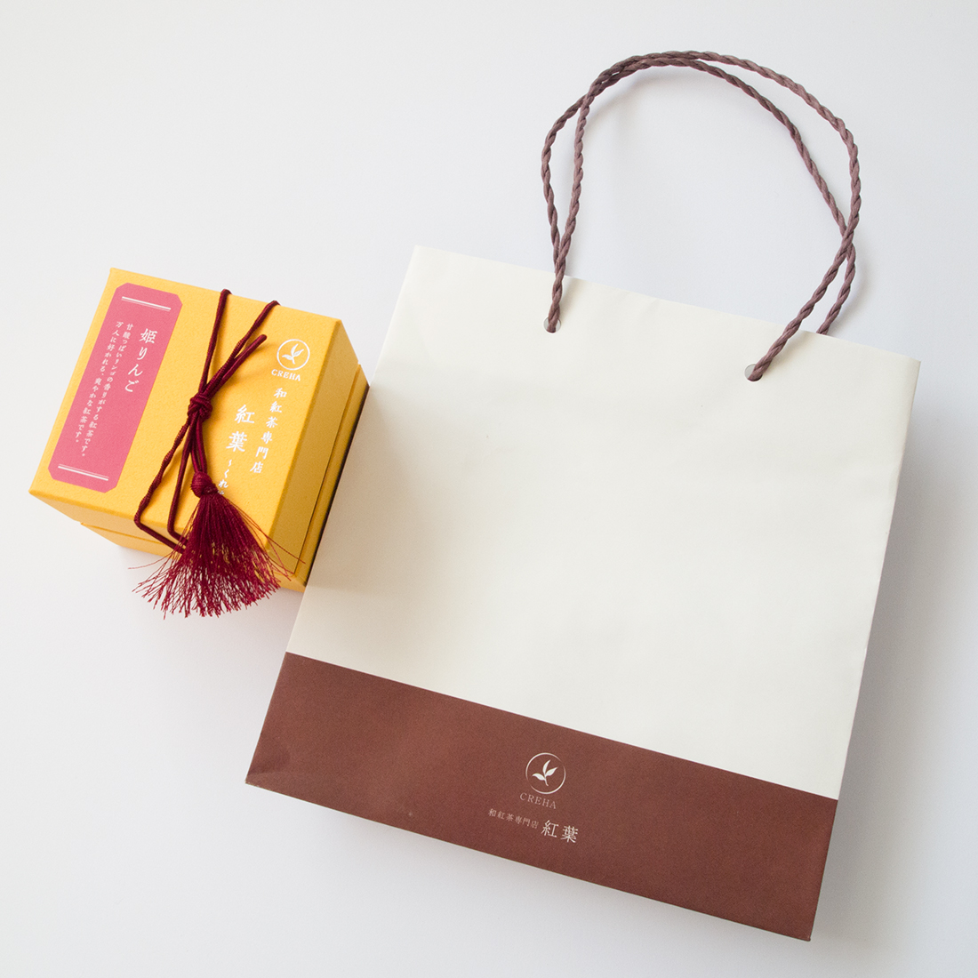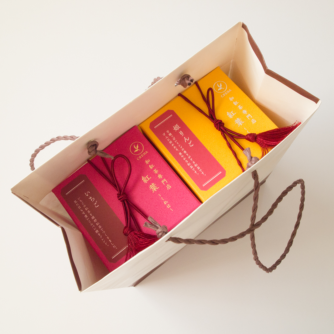 紅葉のロゴマーク入りのギフトバックです。